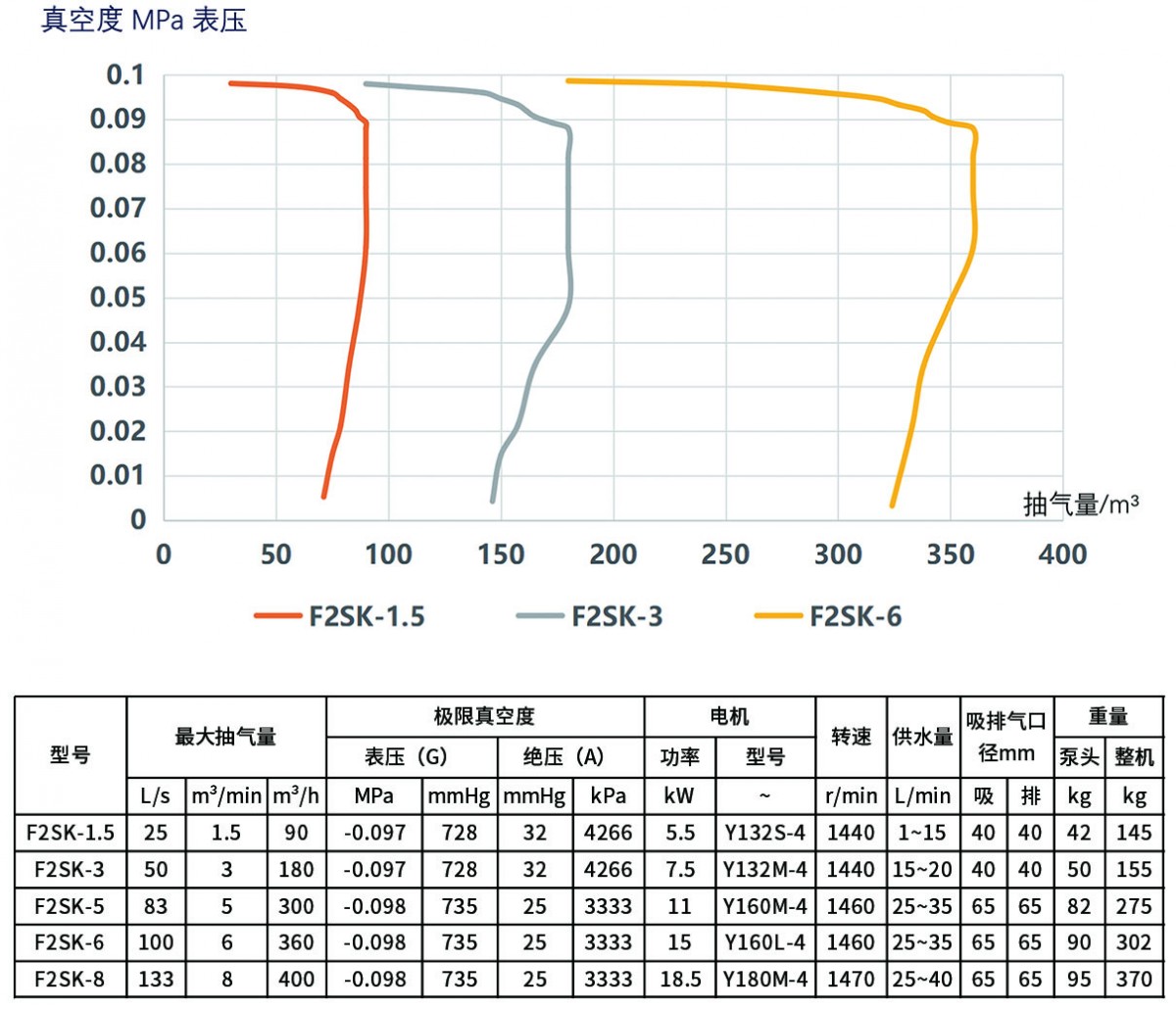 F2SK系列與FSK系列設(shè)計(jì)類似,同樣采用了徑向葉輪,它特點(diǎn)是增加了一個(gè)副葉輪,可以將真空度由-0.093提升到-0.098MPa。